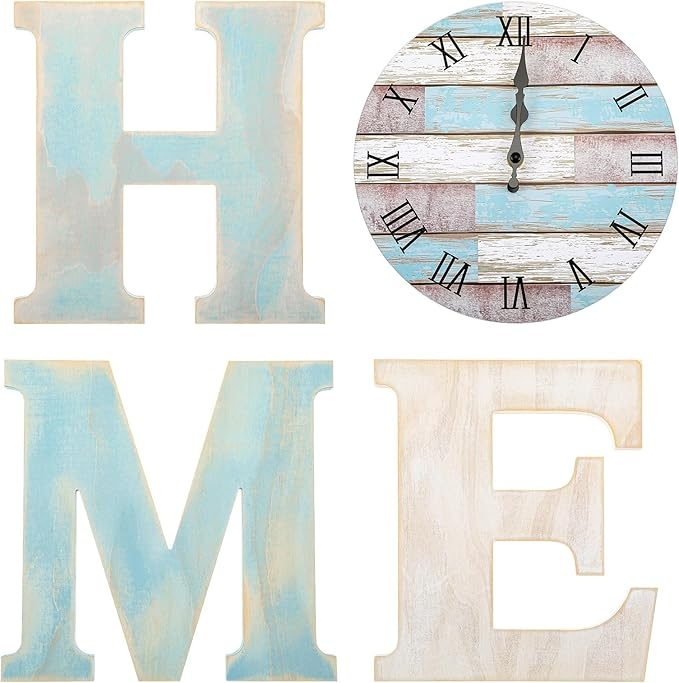 Amazon offers Yousoontic 4 Pcs Coastal Wall Decor Home Letters Wall Decor Farmhouse Signs Beach Decor Home Sign Coastal Wall Clock for Bedroom Kitchen Housewarming Gift for + free shipping with Prime. Product Description:- Costal Wall Decor: immerse into the serenity of beach vibes right at your home with this garden style wall clock in ocean colors, a decor with soothing blue color can create a tranquil marine ambiance for you to enjoy and relax