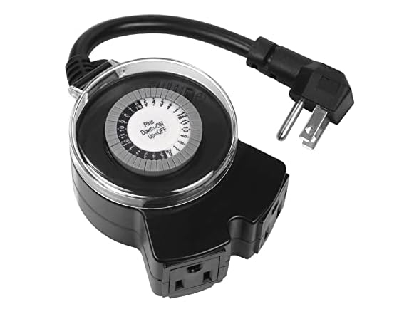 $5.97 Clear Power Outdoor 24-Hour Mechanical Timer, 2 Grounded Outlets, 6 Inch Power Cord, Flat Grounded Plug, for Christmas Lights & Holiday Decorations DCOT-0005-DCWoot offers Clear Power Outdoor 24-Hour Mechanical Timer, 2 Grounded Outlets, 6 Inch Power Cord, Flat Grounded Plug, for Christmas Lights & Holiday Decorations DCOT-0005-DC for $5.97. Free shipping for Prime Members.