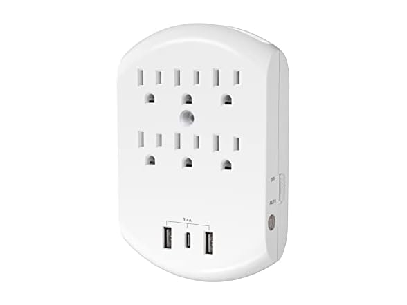 $8.97 Clear Power 6 Outlet Extender with USB C, Multi Plug Outlet Splitter, 3 USB(1 USB-C) & Nightlight, USB Wall Charger, 3-Prong, White, ETL Listed, DC3S-1005-DCWoot offers Clear Power 6 Outlet Extender with USB C, Multi Plug Outlet Splitter, 3 USB(1 USB-C) & Nightlight, USB Wall Charger, 3-Prong, White, ETL Listed, DC3S-1005-DC for $8.97. Free shipping for Prime Members.