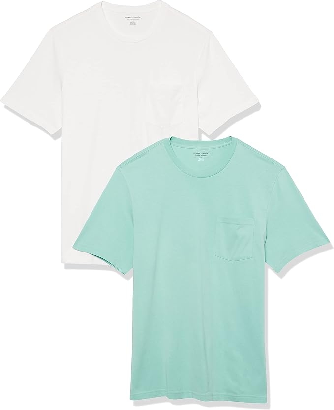 Amazon offers Amazon Essentials Mens T-Shirts, Regular-Fit, Short-Sleeve Crewneck Pocket, Pack of 2 for + free shipping with Prime. Product Description:- REGULAR FIT: Enjoy a comfortable fit with these men's t-shirts, designed to effortlessly fit through the shoulders, chest, and waist