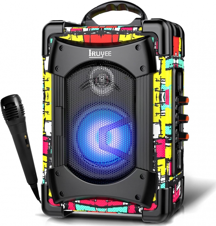 Amazon offers Portable Karaoke Machine Bluetooth Speaker with Microphone,Audio Recording for Indoors & Outdoor,PA System Bluetooth Subwoofer Heavy Bass with FM Radio,Supports TF Card/USB Playback, Colorful for + free shipping with Prime. Product Description:- Multi Functional PA System bluetooth Karaoke speakers with subwoofer: The Karaoke Home System Packages has wired microphone built-in Bluetooth 5.0, FM Radio and so on. it also provides AUX-in and TF Card/USB input, Compatible with Smart mobile phone, TV, iPad, tablet, PC, Electric Guitar. This product is ideal choice for personal party, school, classroom, gym. for all ages and any occasion.