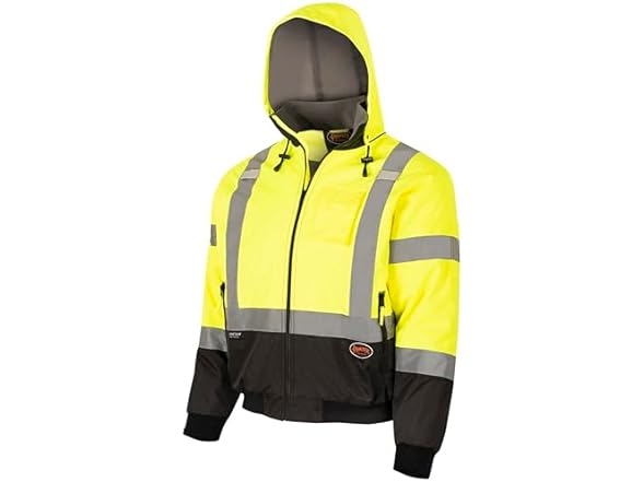 Woot offers Pioneer High Vis Safety Bomber Jacket For Men- Large â Waterproof Reflective Rain Gear Class 3 Detachable Hood for $24.73 free shipping with Prime. Product Description:- HI VIS BOMBER - Heavy duty coat can be worn as rain or snow work