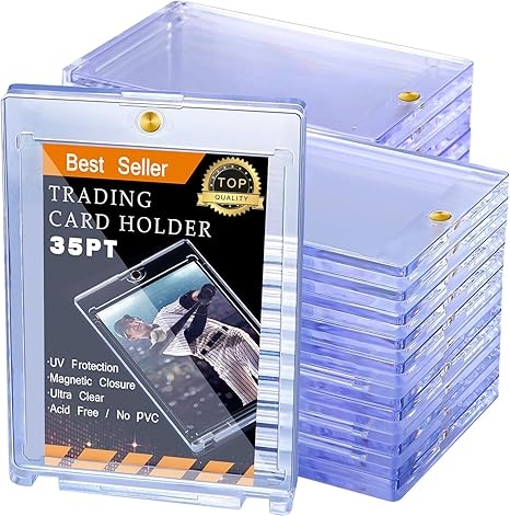 Amazon offers 50 Pieces Magnetic Card Holders for Trading Cards, 35 Pt Hard Case Protector Fit for Standard Size Baseball Football Sports Game Storage and Display for + free shipping with Prime. Product Description:- Hard Material: the magnetic card case is made of quality clear acrylic material, waterproof and sturdy, UV coating, can be stored for a long time, provide comprehensive protection to your card and protect your card from water, dust, sweat, bending, scratching and fading
