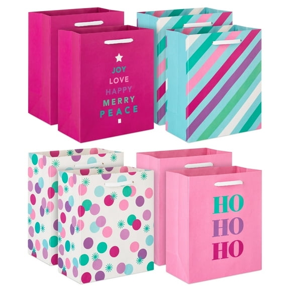 $4 Hallmark 6" Small Pink, Purple and Teal Holiday Gift Bag Assortment (8 Bags: Stripes, Polka Dots, Ho Ho Ho, Peace Love Joy)Walmart offers Hallmark 6" Small Pink, Purple and Teal Holiday Gift Bag Assortment (8 Bags: Stripes, Polka Dots, Ho Ho Ho, Peace Love Joy) for $4 (orig. $10.98) + free shipping with Walmart+