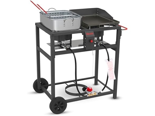 Woot offers Outdoor Propane Deep Fryer and Griddle Combo, Portable 2-in-1 Cooking Station with Double Burner Propane Stove and Wheels for $199.99 (orig. $349). Free shipping for Prime Members. Product Features:- HIGH COOKING POWER - 100,000 BTU OUTPUT: Experience the unmatched