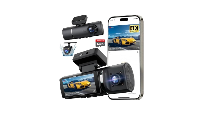 $49.49 3 Channel 4K Dash Cam Front and Rear Inside, Built-in 5G WiFi, 4K+1080P+1080P Dash Camera for Cars with 64GB Card, Dashcam with Loop Recording,24H Parking Monitor,Night Vision,Support 512GB Max Silver +FS1Sale offers 3 Channel 4K Dash Cam Front and Rear Inside, Built-in 5G WiFi, 4K+1080P+1080P Dash Camera for Cars with 64GB Card, Dashcam with Loop Recording,24H Parking Monitor,Night Vision,Support 512GB Max Silver for $49.49 (orig. $98.99) +Free Shipping