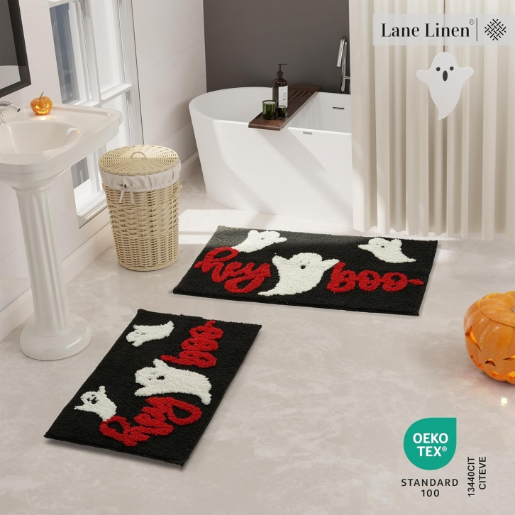 Amazon offers Lane Linen Halloween Rugs Set, Extra Soft Absorbent Premium Halloween Mats, Non Slip - 20' x 32'/17' x 24' - Hey Boo for + free shipping with Prime. Product Description:- SOAK YOUR FEET in luxury with this soft, cushioned halloween bathmat. Protect your feet from the cold floor with this thick, fluffy floor mats. Experience the comfort and luxury of a high quality bath rug and delight your senses with this soft, plush bath mat set.