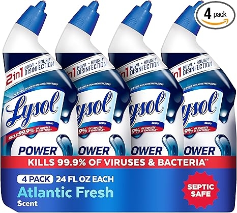 - SEPTIC SAFE: Lysol Power toilet bowl cleaner's 0% bleach formula is safe for septic systems while delivering the same powerful Lysol clean. Kill 99.9% of germs and bacteria, and tackle stains like toilet rings effectively without the harshness of bleach.