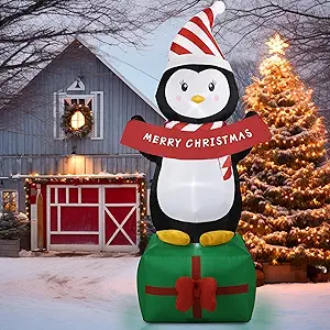 - Merry Christmas Present: This 6 FT inflatable Christmas penguin features exquisite present box and storage bag make this xmas inflatables outdoor are perfect christmas present for friends families! Blow ups decorations Comes with a beautiful wish card to help you write full good wishes for loved ones