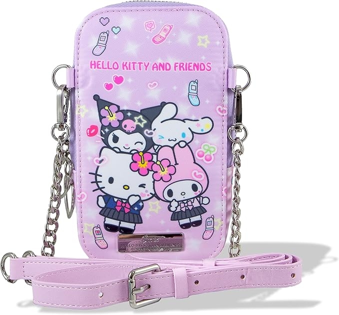 - The Hello Kitty and Friends Kogyaru Phone Pouch is an adorable pink crossbody bag and wallet for your phone and all the essentials. Hello Kitty, My Melody, Kuromi, and Cinnamoroll are dolled up in their school uniforms, representing the classic “kogyaru”, schoolgirl, kawaii style.