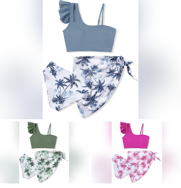 Amazon offers Girls Swimsuits Hawaiian Teen Bathing Suits 3 Piece Tropical Floral Ruffle Strap Bikini Set with Cover Up Skirt 9-16T for (Orig. $22.99) + free shipping with Prime. Note: Various colors available! Some accounts, clip 5% coupon on the product page! Product Description:- 👙🌴【Chic Design and Quality】The Girls Swimsuits Bikini Set features a trendy tropical floral pattern with stylish ruffle straps, ensuring your young girl looks fashionable while enjoying her time at the beach or pool. Made from a durable blend of materials for maximum comfort and lasting wear