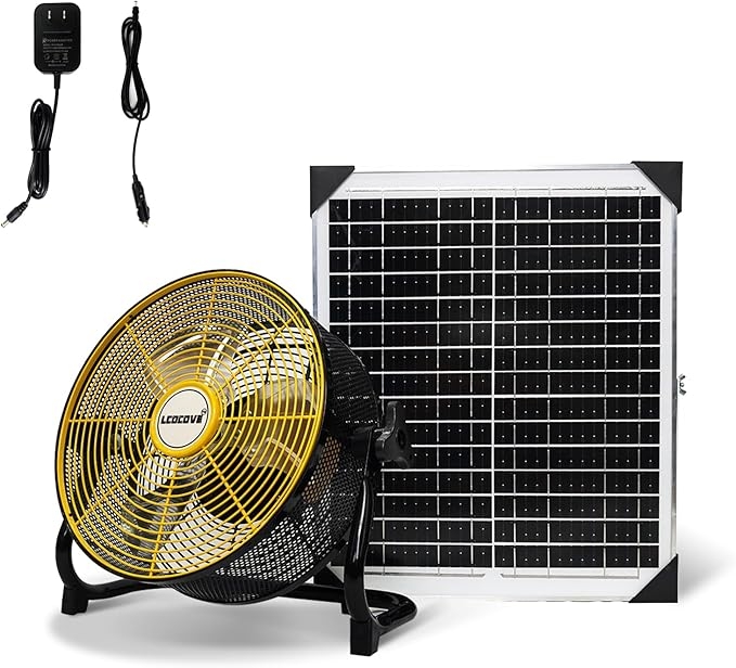 Product Description: Experience versatile cooling with this dual-powered outdoor fan featuring an 18v 20w solar panel for outdoor charging and electricity savings. The fan comes with 12 speed settings and includes metal fan guard with 0.8cm mesh spacing to prevent accidental contact. Plus, it's backed by a 1-year quality assurance with customer support.