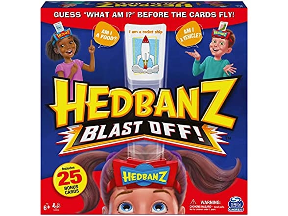 - AN EXCITING NEW WAY TO PLAY HEDBANZ: Race against the clock AND the other team. Try to figure out the card on your head, but don’t take too much time -- the card will BLAST OFF and you’ll start over