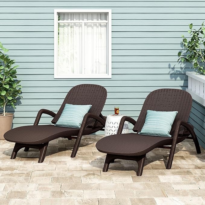 Amazon offers Christopher Knight Home Waverly Wicker Chaise Lounges Set of 2, Wicker Lounge Chair, Deep Seating Lounge Sofa, Beach Chair, Chaise Lounge with Armrest, Patio Lounge for Garden Pool Side, Dark Brown for + free shipping with Prime. Product Description:- 【Outdoor Chaise Lounge Set of 2】Elevate your backyard or patio with our luxurious outdoor chaise lounge whether you're soaking up the sun or unwinding with a good book, this lounge set of 2 will turn your outdoor area into a stylish and inviting retreat