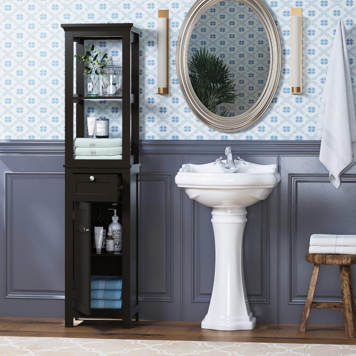 Amazon offers Spirich Slim Bathroom Storage Cabinet, Tall Narrow Cabinet with Door and Shelves, Freestanding Linen Tower (Espresso) for (Orig. $94.98) after coupon + free shipping with Prime. Apply Code: XKS32RFHProduct Description:- QUALITY LINEN TOWER: This tall storage cabinet is made of quality MDF, decorative paneling, and nickel drawer pull, adding style and charm. With an anti-tip device, the bathroom floor cabinet can be tightly secured to the wall for security and stability.
