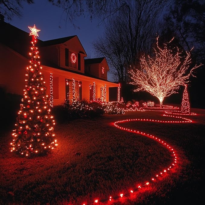 Amazon offers TW SHINE 2 Pack Solar Christmas Lights Decorations Outdoor, Total 400 LED 132 FT Solar Powered Outdoor Christmas Light with 8 Modes, Waterproof Christmas Decor for Home Tree Party Yard (Red) for + free shipping with Prime. Product Description:- Specification: 2 pack 200 LED super bright Christmas solar powered lights. The outdoor lights has 6.5 FT leading wire, and the light string is 66 FT, total length is 72.5 FT, the bulb spacing is 3.9 inch.