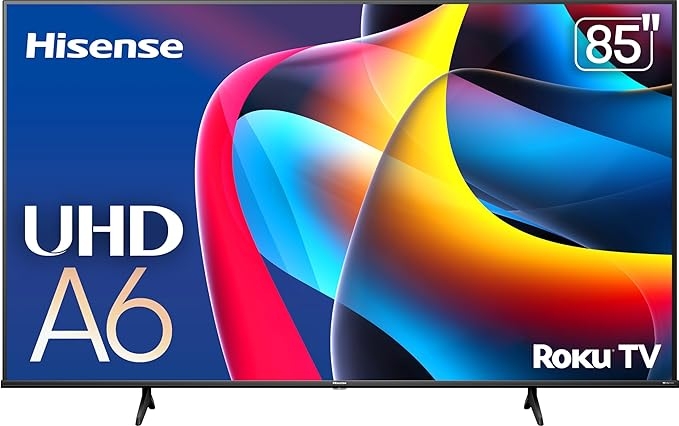 Amazon offers Hisense 85-Inch Class A6 Series 4K UHD Smart Roku TV (85A6NR, 2024 Model) - Dolby Vision HDR, DTS Studio Sound, Game Mode Plus, Alexa Compatibility, Black for with free shipping Note: Low stock! Product Description: