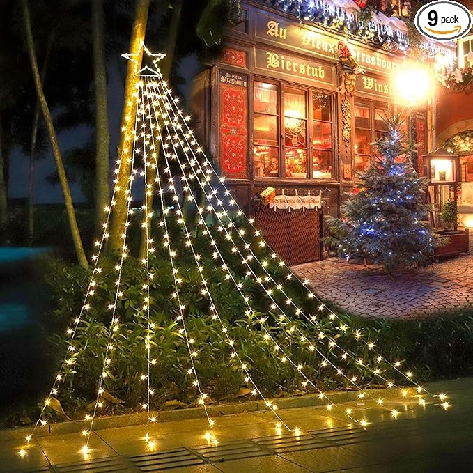 Amazon offers DANLI Christmas Decorations Star String Light 320 LED 9x12FT Christmas Tree Topper Lights Fairy Lights for Outdoor Indoor Patio Gate Yard Xmas Holiday Decoration(Warm White) for + free shipping with Prime. Product Description:- [320 LED Star String Lights]- The 320 LED light string is consisting with 9 strands 12ft star lights chain.The diameter of the largest star is 13.8" and the height is 14.7", Plug cable length is 16.4ft. it is perfect for gate, garden, wedding,Xmas, party, backyard and home decoration which creates various atmospheres for different occasion
