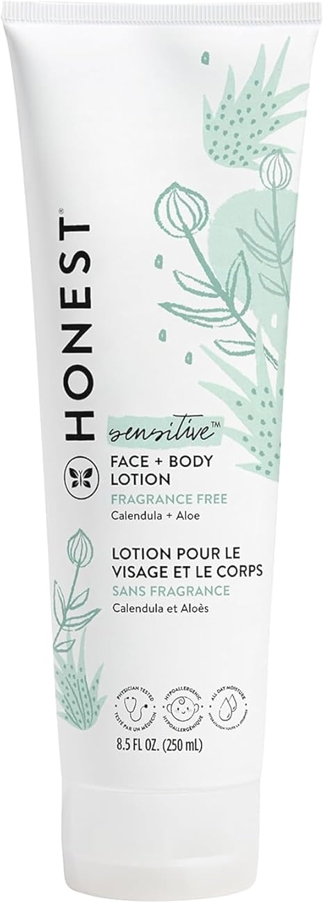 Amazon offers The Honest Company Hydrating Face + Body Lotion | Fast Absorbing, Naturally Derived, Hypoallergenic | Fragrance Free Sensitive, 8.5 fl oz for after coupon + free shipping with Prime. Note: Clip 15% coupon on the product page and buy with subscribe & save! Product Description:- Meet the moisture your fam’s skin is missing. Whether you’re massaging into your lil’ bundle of joy’s skin or your own, our naturally-derived Face and Body Lotion hydrates and nourishes thirsty skin, leaving it soft and smooth