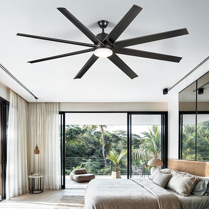 Amazon offers DWVO 72 Inch Ceiling Fan with Light, Reversible 8 Blade Ceiling Fan with Light and Remote, 6-Speed Quiet DC Motor, Dimmable 3 Color Temperatures, Memory Function for + free shipping with Prime. Product Description:- Sleek Modern Design: Our 72-inch ceiling fan features 8 reversible black blades that blend seamlessly into modern decor, designed to serve large areas like living rooms and bedrooms (350-500 sq ft). It provides consistent airflow and integrated lighting coverage, balancing style and functionality for open or spacious environments