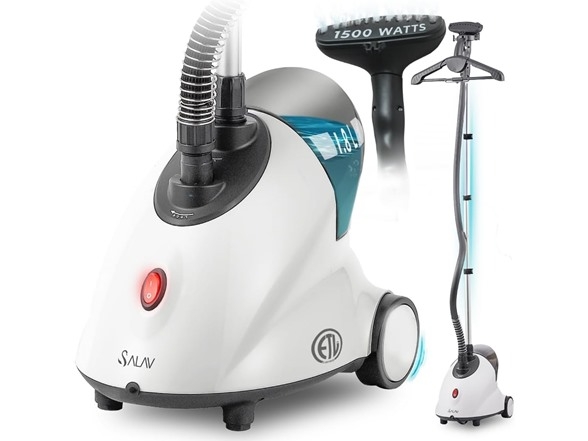 $39.97 SALAV GS18-DJ Standing Garment Steamer with Roll Wheels for Easy Movement, 1.8L Water Tank for 1 Hour Continuous Steaming, Adjustable Pole for Storage, 1500 watts, Includes Descaler Packet, WhiteWoot offers SALAV GS18-DJ Standing Garment Steamer with Roll Wheels for Easy Movement, 1.8L Water Tank for 1 Hour Continuous Steaming, Adjustable Pole for Storage, 1500 watts, Includes Descaler Packet, White for $39.97 (orig. $79.99) + free shipping with Prime.