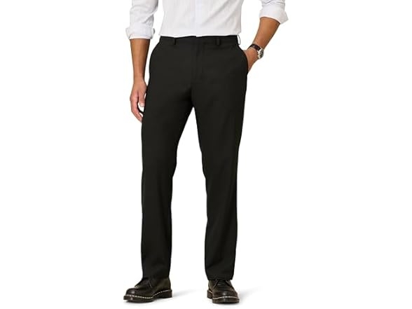 Product Description: Designed for the modern man, our stretch dress pants for men offer wrinkle resistance and better movement. These dress pants for men have a classic fit, offering roominess through the hip and thigh while sitting comfortably at the waist. Details include a zip fly, hook and bar front closure, an internal button, front slant pockets, and button-through back pockets.