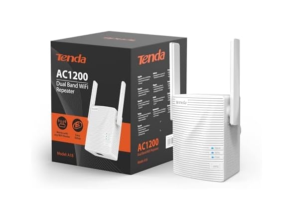 Expand your WiFi network with the Tenda A18. The Tenda A18 WiFi amplifier is designed to take your WiFi to the next level.With a dual-band speed of AC1200 Mbps and two 2dBi antennas, it