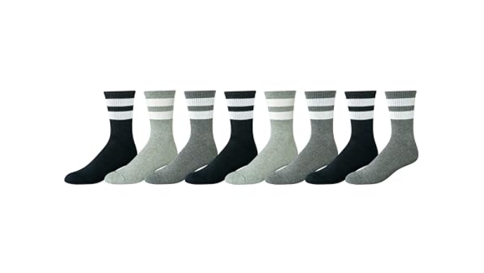 $8.95 Amazon Essentials Men's Retro Stripe Crew Sock, 8 Pairs, Black/Grey/Light Grey, 8-12 +FS1Sale offers Amazon Essentials Men's Retro Stripe Crew Sock, 8 Pairs, Black/Grey/Light Grey, 8-12 for $8.95 (orig. $17.10) +Free Shipping