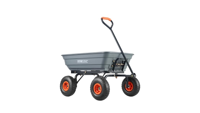 $69.13 VEVOR 4 Cu.Ft. 600lbs Poly Garden Cart Dump Wagon, Heavy Duty 4 Wheel Wheelbarrow Yard Cart Dump Wagon with 10in All Terrain Wheels, Steel Frame and Quick Release System +FS1Sale offers VEVOR 4 Cu.Ft. 600lbs Poly Garden Cart Dump Wagon, Heavy Duty 4 Wheel Wheelbarrow Yard Cart Dump Wagon with 10in All Terrain Wheels, Steel Frame and Quick Release System for $69.13 (orig. $90.99) +Free Shipping