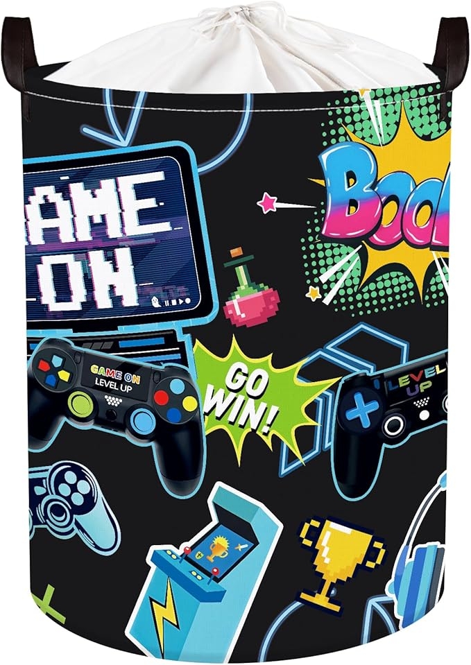 Amazon offers Clastyle Cool Game Storage Basket Kid Game Controller Clothes Laundry Hamper Collapsible Boy Toy Box for Nursery Palyroom,Black,36 * 45 cm for + free shipping with Prime. Product Description:- 3D Monster Truck Laundry Basket : Immerse yourself in the cool purple cyberpunk world of racing,a car break through the wall, boys will love this laundry basket