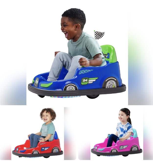 $50 Kid Trax 6V Bumper Car Ride-On Toy, 360° Spin with LED Lights, Soft Bumpers, Safety BeltWalmart offers Kid Trax 6V Bumper Car Ride-On Toy, 360° Spin with LED Lights, Soft Bumpers, Safety Belt for $50 (orig. $119) + free shipping.