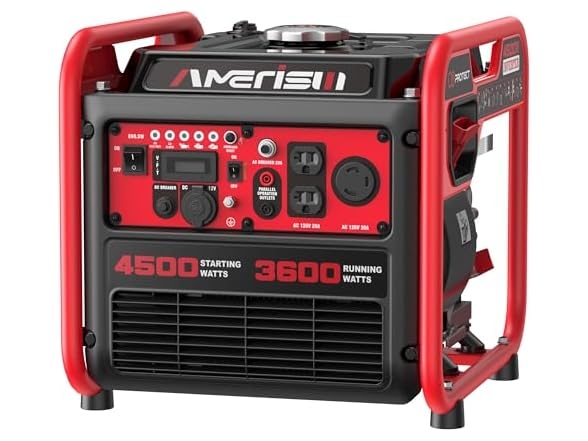 Woot offers AMERISUN Portable Inverter Generator 4500W Gas Powered, CO-Sensor, Lightweight & Quiet, EPA Compliant 2025 Version for $199.99 (orig. $379.99). Free shipping for Prime Members. Product Description:AMERISUN Portable Inverter Generator 4500W Gas Powered, CO-Sensor,
