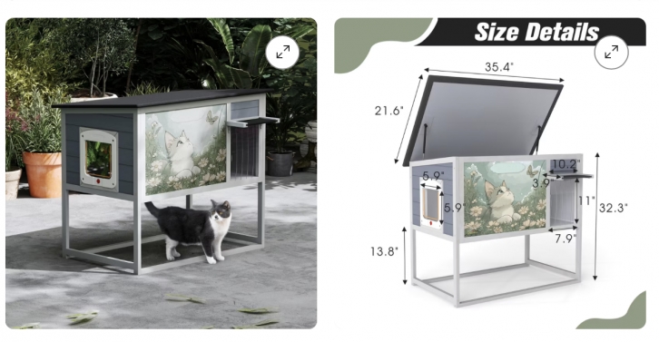 Target offers AZL1 Life Concept Pet Crates and Houses Weatherproof Outdoor Cat House with High Legs, Curtained Door, Openable Top, Gray, 35.43"*21.57”*32.28" for $32.99 (orig. $82.99) + free shipping with Target Circle. Product Description:- Better for Outdoor: Featuring a highly elevated bottom, this wood cat house keeps the interior dry, cozy even in humid climates and gives cats a better point to observe the surroundings. Perfect for your balcony, patio, and backyard.