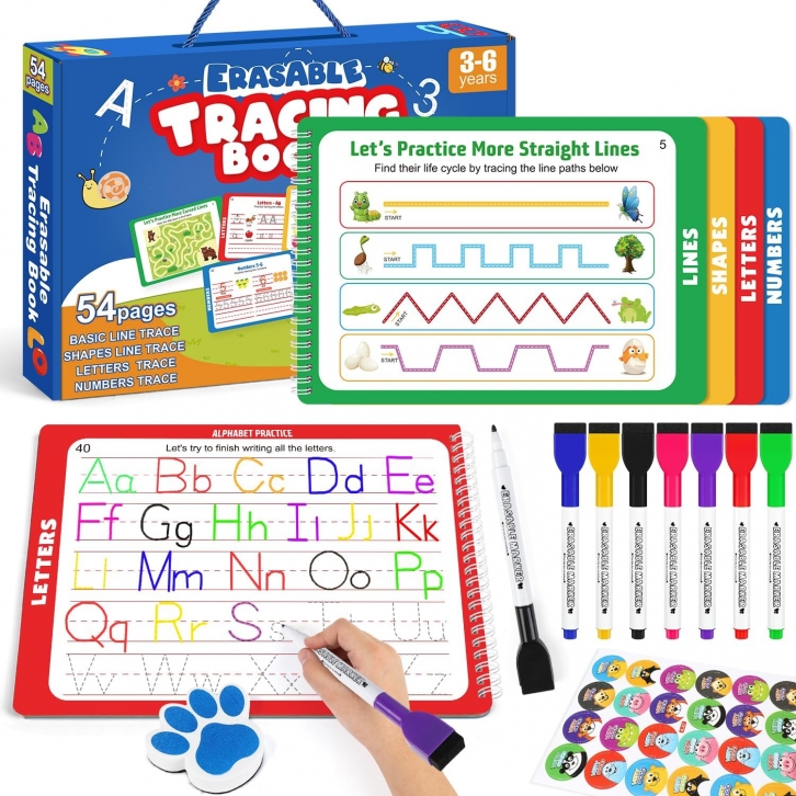 Amazon offers Preschool Learning Activities, Tracing Books for Kids Ages 3-5, Toddler Activity Book for Handwriting Practice, Homeschool Supplies and Toddler Travel Essential Educational Toys for + free shipping with Prime. Product Description:- GREAT VALUE PRESCHOOL LEARNING TOYS: IVENRXIU learning & education toys comes with a exquisite portable gift box containing 50 pages of toddler learning activities, 1 ''Very Good'' sticker, 8 dry erase markers, 1 whiteboard eraser and 1 storage bag. This comprehensive and engaging busy book contains everything you need for pen control, basic education, and core skill development for toddlers, so you don't have to spend more on additional accessories