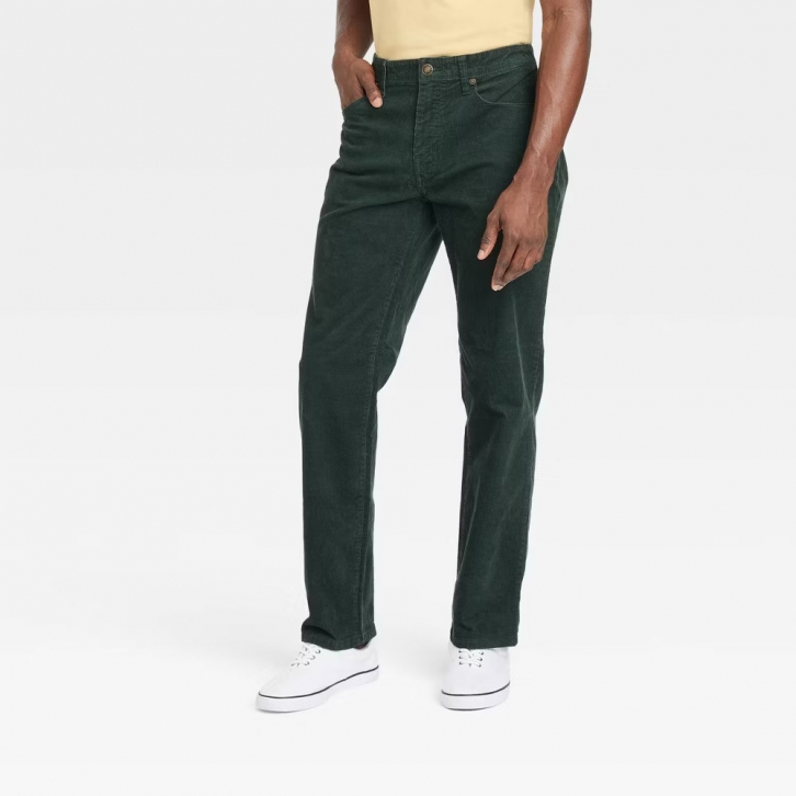 Product Description: From weekdays to weekends, these Corduroy Pants from Goodfellow & Co offer versatile styling options. Made from cotton-spandex blend fabric with recycled polyester-cotton blend lining, these mid-rise pants move and stretch with you. The fly snap and zipper closure provides a stay-put fit, while the straight legs gives you a more refined look. Tailored in a straight fit, these solid-color jeans have two side and two back pockets plus a coin pocket to give you space for stashing small on-the-go essentials.