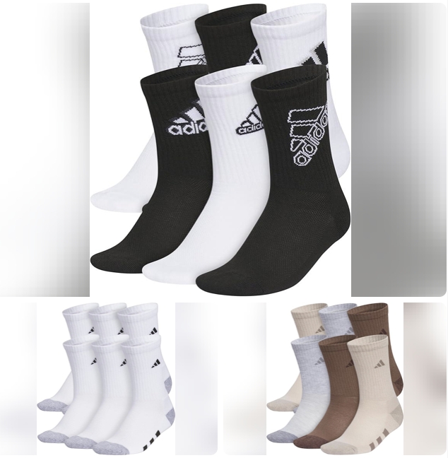 Amazon offers adidas Unisex Kids Crew Socks for Boys and Girls Youth (6-pack) Athletic Cushioned and Comfortable, Tall Mid-calf for + free shipping with Prime. Note: Various colors available! Product Description:- These youth socks provides long-lasting wear and comfort. Ideal for kids crew socks or athletic socks, these provide all-day support Size: Large Color: White/White-clear Onix Grey/Pulse Magenta Pink. Color: White/Grey/Black