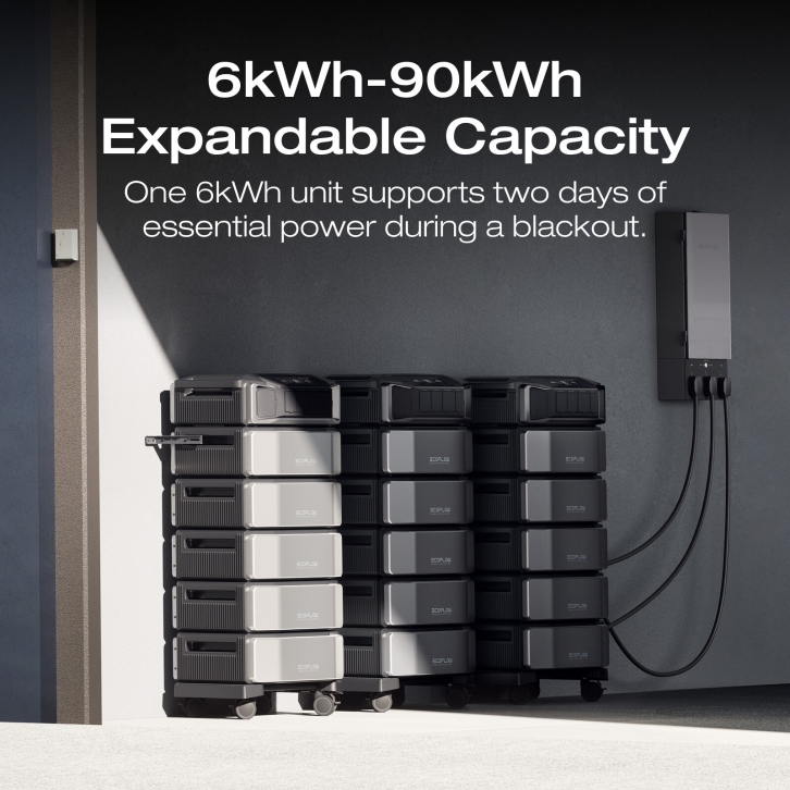 Scalable from one battery of 6kWh, two days of essential power, all the