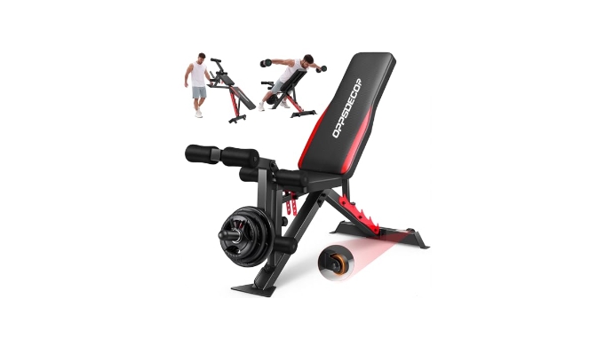 $119.99 OPPSDECOR 1200LBS Weight Bench with Wide-Range Leg Extension & Curl (Full ROM), Adjustable Workout Bench Press with Wheels & Handle, Incline/Flat Weight Bench for Home Gym Strength Training +FS1Sale offers OPPSDECOR 1200LBS Weight Bench with Wide-Range Leg Extension & Curl (Full ROM), Adjustable Workout Bench Press with Wheels & Handle, Incline/Flat Weight Bench for Home Gym Strength Training for $119.99 (orig. $239.98) +Free Shipping