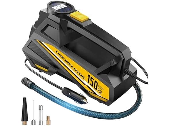 Woot offers FLYKID Tire Inflator Portable Air Compressor- 12V DC Air Pump for Car Tires with 150PSI LCD Digital Gauge & Emergency LED Light,Auto Tire Pump for Cars,Motorcycles,Bikes,Balls for $16.99 (orig. $39.99). Free shipping for Prime Members. Product Features:
