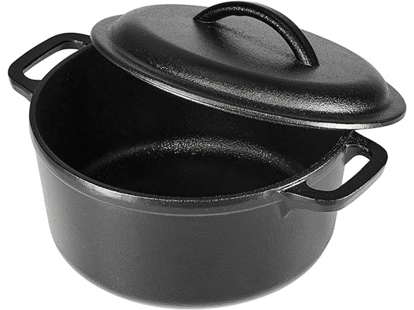 Product Description: Amazon Basics Round Pre-Seasoned Cast Iron Mini Dutch Oven Pot with Lid and Dual Handles, 2-Quart, Black