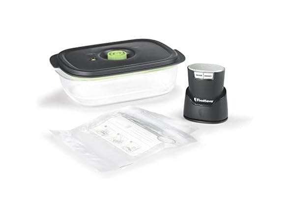 FoodSaver vacuum sealer removes air from zipper bags and containers with