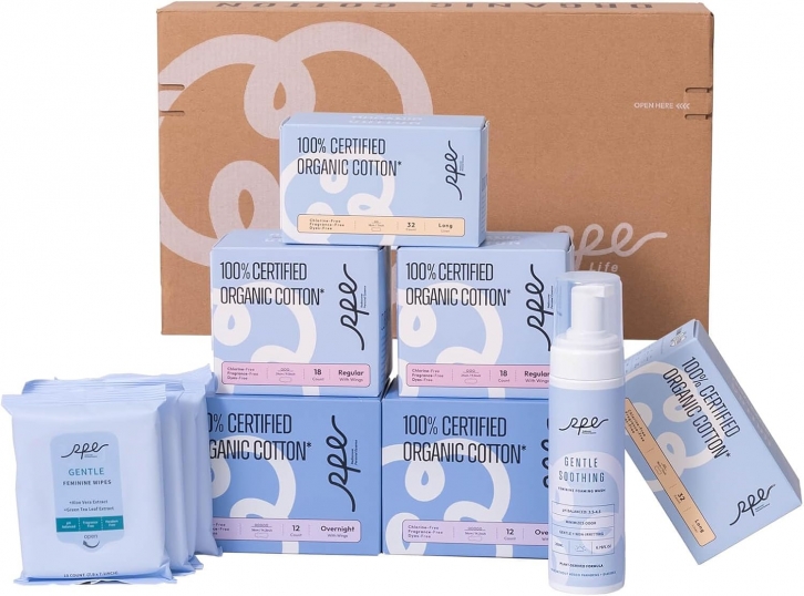 Feminine Care Bundle, Period Essentials 100% Organic Cotton Pads for Women, Size 2,3,5 Sanitary Napkins 124 Ct, Flushable Gentle Feminine Wet Wipes, Plant-Based Soothing Feminine WashAmazon offers Feminine Care Bundle, Period Essentials 100% Organic Cotton Pads for Women, Size 2,3,5 Sanitary Napkins 124 Ct, Flushable Gentle Feminine Wet Wipes, Plant-Based Soothing Feminine Wash for with subscription & coupon + free shipping.
