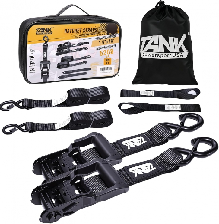 - 【2-Years Warranty & Package】: Tankpower provides 2 years warranty, please feel free to buy. If you have any problems about rachet straps, please feel free to contact us, our service team is available 24 hours a day. Product List: 2*RATCHET STRAPS, 2*SOFT LOOPS, 1*HEAVY DUTY BAG, 1*STORAGE BAG.
