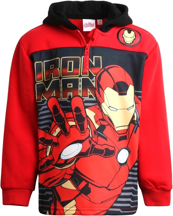 - Iron Man Tech Boys Fleece Hoodie: For fans of Tony Stark’s armor, this Iron Man hoodie for boys delivers comfort and style. Made from soft fleece with bold Marvel graphics, this boys sweatshirt is ideal for school, sports, or casual outfits. A versatile Marvel hoodie that works as a superhero hoodie or Avengers hoodie staple for kids who love Iron Man.