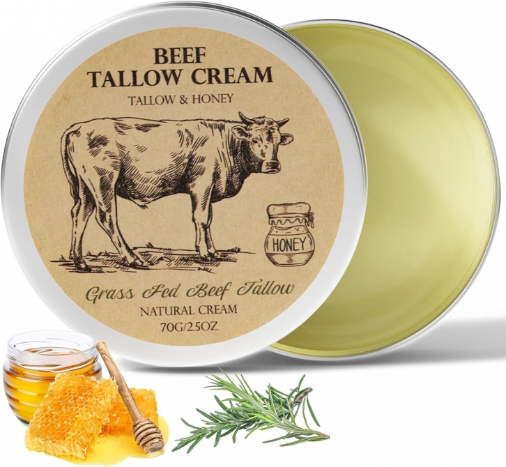 Beef Tallow for Skin, Tallow and Honey Cream,Tallow Face Moisturizer, Natural Grass-Fed Beef Tallow Balm with Raw Honey Moisturizing Cream for Body Lotion Skin Care for Skin (2.47 Oz)Amazon offers Beef Tallow for Skin, Tallow and Honey Cream,Tallow Face Moisturizer, Natural Grass-Fed Beef Tallow Balm with Raw Honey Moisturizing Cream for Body Lotion Skin Care for Skin (2.47 Oz) for after coupon + free shipping with Prime.