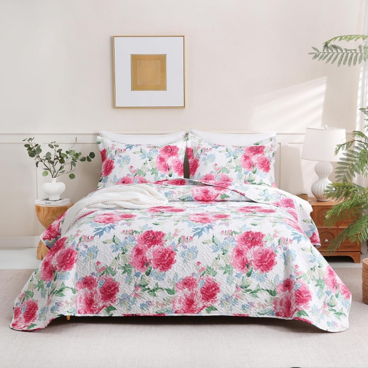 Amazon offers JSD Rose Floral Quilt Set Full Queen Size, 3 Piece Printed Bedspreads Coverlet with Pillow Sham, Soft Microfiber Quilted Blanket for + free shipping with Prime. Product Description:- Package Includes - Full/Queen size quilt set includes 1 quilt (90"x96"), 2 quilted pillow shams ( 20“x26")