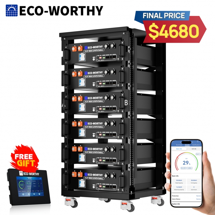 Ebay offers ECO-WORTHY 6Pack 30.72kWh 48V 100AH Server Rack LiFePO4 Lithium Battery for $4,679.99 (reg. $5,299.99) after code with free shipping. Apply Code: HOLIDAYRUSHProduct Description: - [Real-time Battery Monitoring] ECO-WORTHY