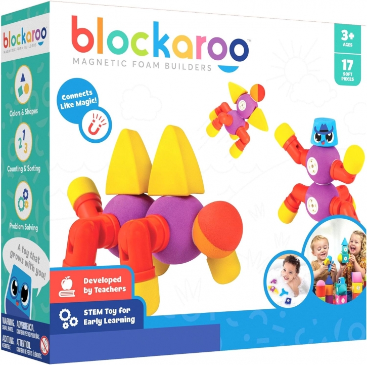 Amazon offers Blockaroo Magnetic Foam Building Blocks - 17-Piece Critter Set, Bath Toys for Toddlers, Preschool Toys, Bathtub Toys, Sensory Toys, Blocks for Toddlers 3-5, Engineering Toys for Kids 3-5, Bath Blocks for after coupon + free shipping with Prime. Note: Clip coupon on the product page! Product Description:- EASIEST BUILDING SYSTEM FOR YOUNG LEARNERS - Blockaroo blocks are a new way to build. Our patent-pending foam magnetic blocks click together like magic, rotate 360-degrees, and always attract to each other, creating a multi-sensory experience that kids love.