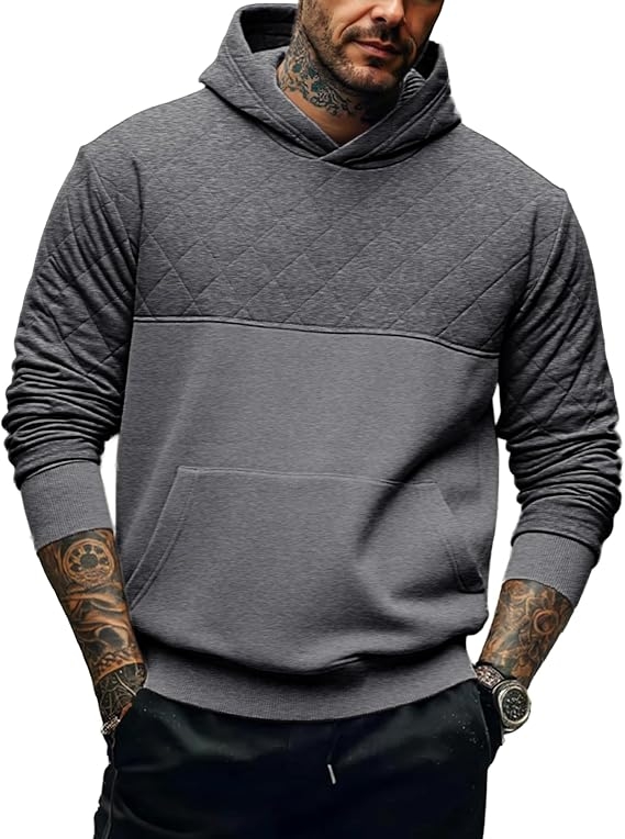 - Fashion Design: Men's long-sleeved wool diamond patchwork hoodie, durable kangaroo pocket, solid color, sporty style. Just the right size to show your figure, but not restrict your movement.