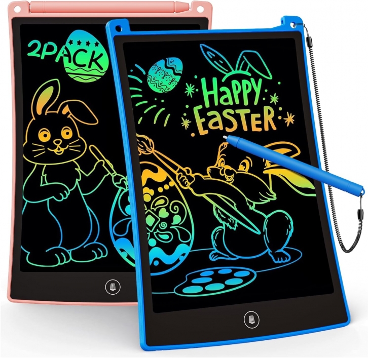 Amazon offers KOKODI 2 Pack LCD Writing Tablet for Kids, 8.5 Inch Colorful Doodle Board, Car Trip Travel Games Learning Toys, Erasable Drawing Pad, Birthday Gifts for Boys Girls Age 3 4 5 6 7 8(Blue & Pink) for + free shipping with Prime. Product Description:- 8.5 Inch Colorful Lcd writing Tablet: You can write on the LCD with stylus or anything else that creates pressure. As sleek as writing on paper. You can draw a very thin line and a thicker line to make things look different. With erase button on the front and lock switch. You can draw and erase easily by pressing the button on the front of the board. The pen fits snug on top of tablet and it will not come loose.